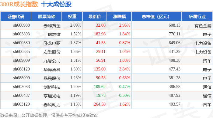 证券之星消息,11月28日,380R成长(000119)指数报收于4128.12点,涨1.17%,成交934.14亿元,换手率1.26%。当日该指数成份股中,上涨的有211家,晶合集成以10.42%的涨幅领涨,下跌的有62家,中曼石油以3.48%的跌幅领跌。