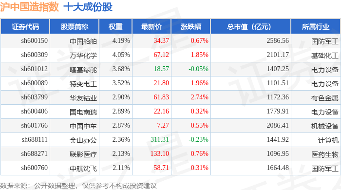 证券之星消息,11月28日,沪中国造(000161)指数报收于1685.92点,涨0.99%,成交780.33亿元,换手率1.25%。当日该指数成份股中,上涨的有115家,航天环宇以20.0%的涨幅领涨,下跌的有30家,云天励飞以2.44%的跌幅领跌。