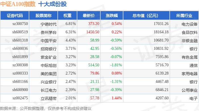 资金流向方面,中证A100(000903)指数成份股当日主力资金净流出合计3.56亿元,游资资金净流出合计2.89亿元,散户资金净流入合计6.44亿元。成份股资金流向详情见下表: