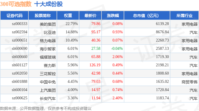 300可选(000911)指数十大成份股详情如下: