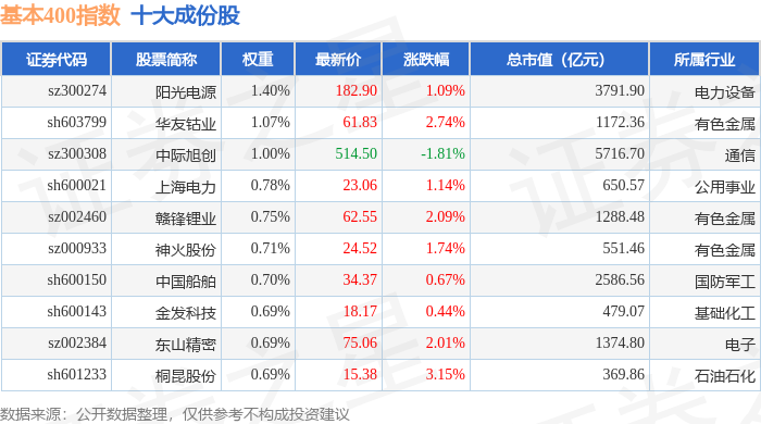 证券之星消息,11月28日,基本400(000966)指数报收于8588.49点,涨0.79%,成交2213.17亿元,换手率1.13%。当日该指数成份股中,上涨的有284家,湖南裕能以11.01%的涨幅领涨,下跌的有94家,以岭药业以2.4%的跌幅领跌。