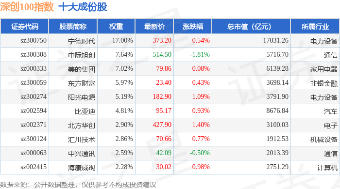 深创100(399088)指数十大成份股详情如下: