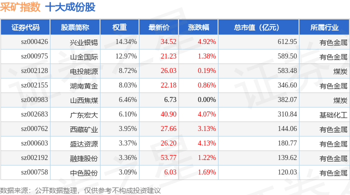 资金流向方面,采矿指数(399232)成份股当日主力资金净流入合计8.44亿元,游资资金净流出合计2.48亿元,散户资金净流出合计5.96亿元。成份股资金流向详情见下表: