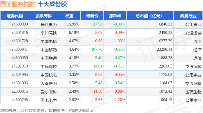 证券之星消息,11月28日,国证服务(399320)指数报收于2167.87点,涨0.1%,成交241.47亿元,换手率0.43%。当日该指数成份股中,上涨的有63家,海峡股份以3.09%的涨幅领涨,下跌的有33家,中山公用以2.91%的跌幅领跌。