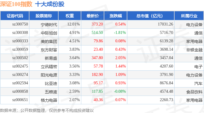 资金流向方面,深证100(399330)指数成份股当日主力资金净流出合计12.28亿元,游资资金净流入合计4.52亿元,散户资金净流入合计7.76亿元。成份股资金流向详情见下表: