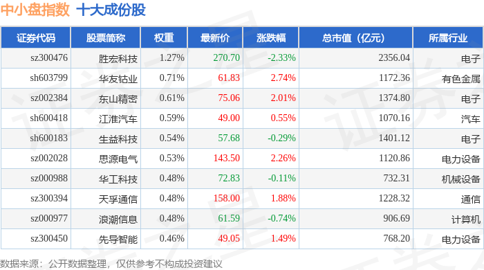 中小盘(399401)指数十大成份股详情如下: