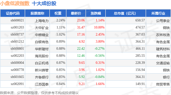 小盘低波(399408)指数十大成份股详情如下: