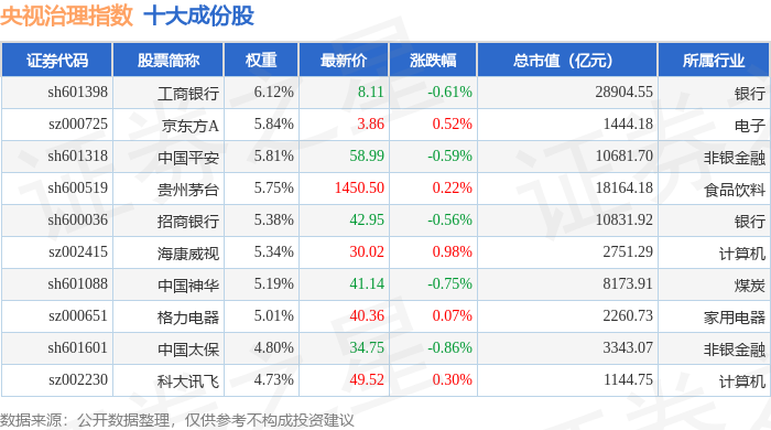 证券之星消息,11月28日,央视治理(399554)指数报收于7514.83点,跌0.07%,成交365.55亿元,换手率0.33%。当日该指数成份股中,上涨的有30家,国投智能以7.45%的涨幅领涨,下跌的有19家,众生药业以10.0%的跌幅领跌。