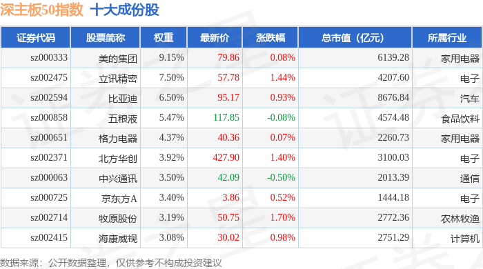证券之星消息,11月28日,深主板50(399750)指数报收于8894.88点,涨0.47%,成交516.8亿元,换手率0.73%。当日该指数成份股中,上涨的有32家,歌尔股份以2.95%的涨幅领涨,下跌的有17家,招商蛇口以2.63%的跌幅领跌。