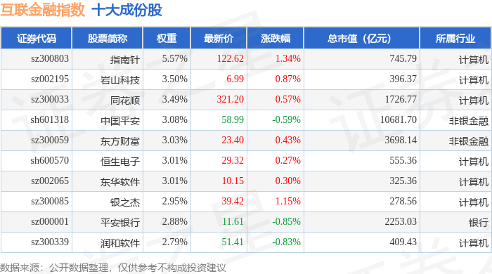 资金流向方面,互联金融(399805)指数成份股当日主力资金净流出合计3.17亿元,游资资金净流出合计4.48亿元,散户资金净流入合计7.57亿元。成份股资金流向详情见下表: