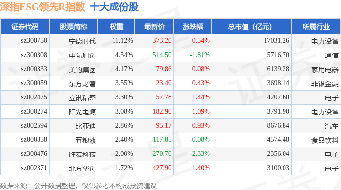 深指ESG领先R(470029)指数十大成份股详情如下: