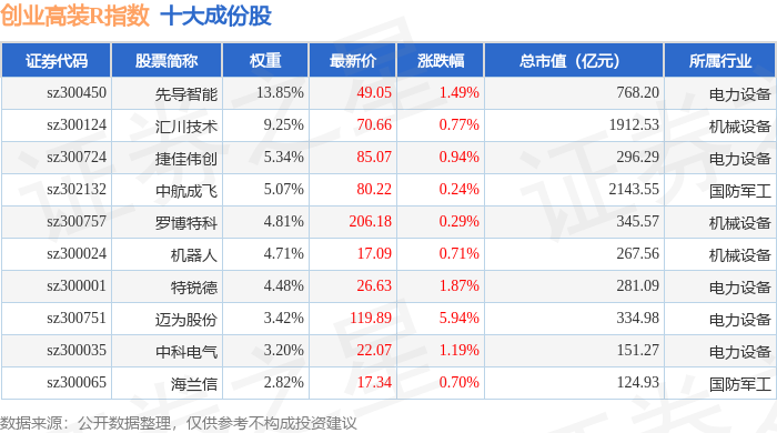 资金流向方面,创业高装R(470040)指数成份股当日主力资金净流入合计3.0亿元,游资资金净流出合计1.72亿元,散户资金净流出合计1.29亿元。成份股资金流向详情见下表: