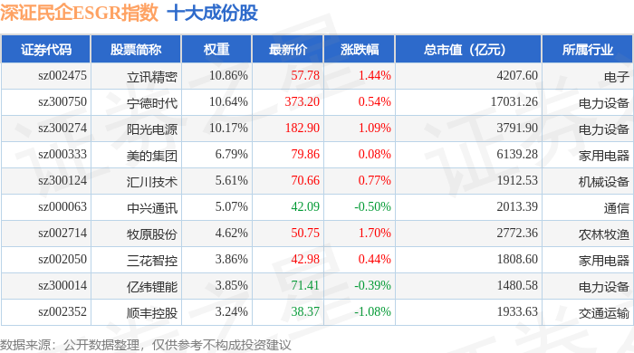 深证民企ESGR(470056)指数十大成份股详情如下: