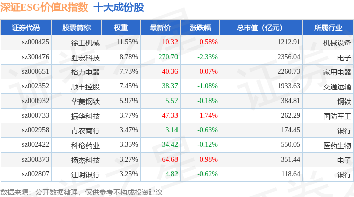 深证ESG价值R(470061)指数十大成份股详情如下: