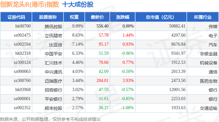 创新龙头R(港币)(480037)指数十大成份股详情如下: