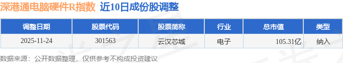近10日内深港通电脑硬件R(483043)指数成份股做了调整,新纳入了1只股票。