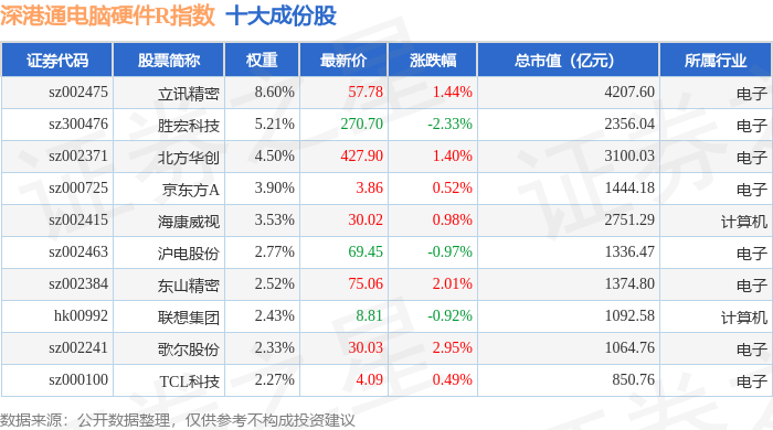 深港通电脑硬件R(483043)指数十大成份股详情如下: