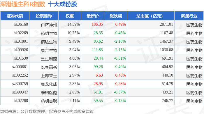 证券之星消息,11月28日,深港通生科R(483059)指数报收于7956.05点,跌0.58%,成交97.73亿元,换手率0.63%。当日该指数成份股中,上涨的有30家,荣昌生物以3.28%的涨幅领涨,下跌的有30家,华兰疫苗以6.6%的跌幅领跌。