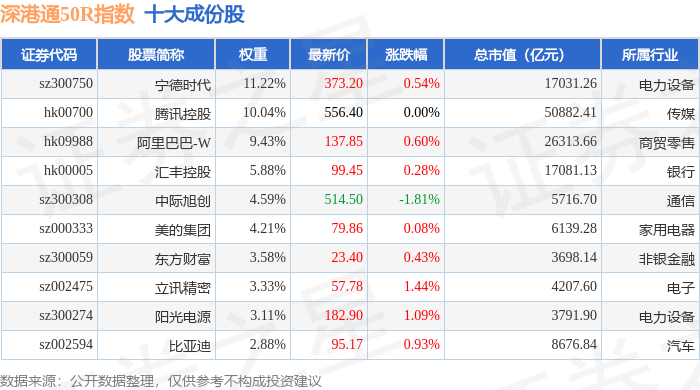 深港通50R(483091)指数十大成份股详情如下: