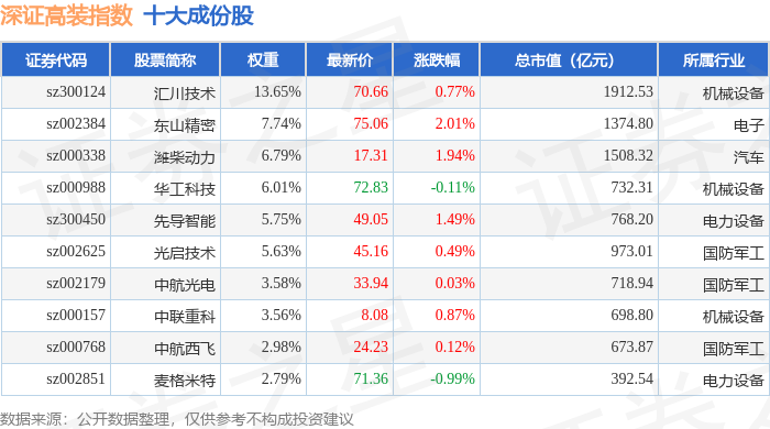 证券之星消息,11月28日,深证高装(970037)指数报收于2821.9点,涨1.64%,成交367.17亿元,换手率2.94%。当日该指数成份股中,上涨的有47家,固高科技以14.24%的涨幅领涨,下跌的有3家,麦格米特以0.99%的跌幅领跌。
