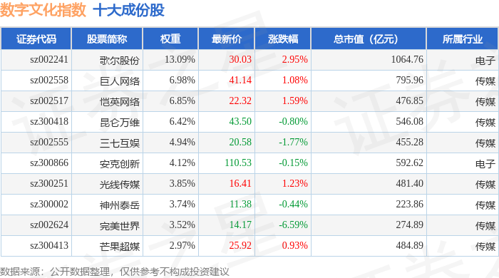 资金流向方面,数字文化(970047)指数成份股当日主力资金净流入合计1619.91万元,游资资金净流出合计1.99亿元,散户资金净流入合计1.83亿元。成份股资金流向详情见下表: