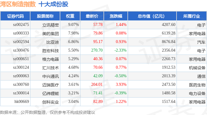 证券之星消息,11月28日,湾区制造(980009)指数报收于4711.38点,涨1.0%,成交970.66亿元,换手率2.29%。当日该指数成份股中,上涨的有83家,广汽集团以16.62%的涨幅领涨,下跌的有16家,光库科技以2.6%的跌幅领跌。
