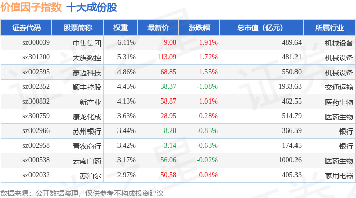 价值因子(980056)指数十大成份股详情如下: