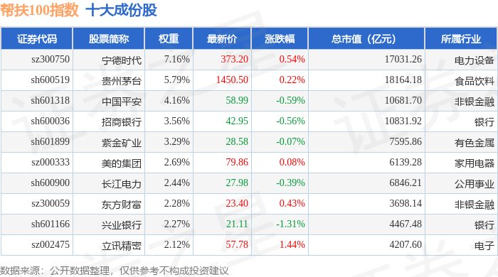资金流向方面,帮扶100(980065)指数成份股当日主力资金净流出合计13.54亿元,游资资金净流出合计3.24亿元,散户资金净流入合计16.78亿元。成份股资金流向详情见下表: