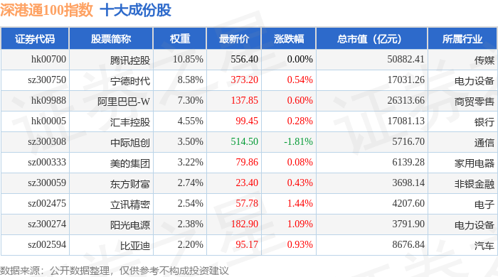 资金流向方面,深港通100(983007)指数成份股当日主力资金净流出合计22.27亿元,游资资金净流入合计10.9亿元,散户资金净流入合计11.36亿元。成份股资金流向详情见下表: