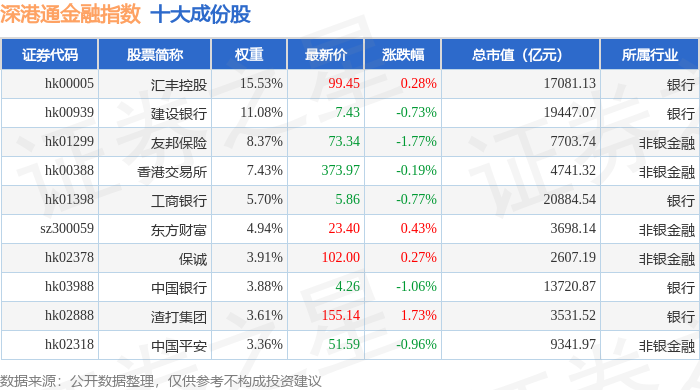 证券之星消息,11月28日,深港通金融(983025)指数报收于7309.76点,跌0.51%,成交216.72亿元,换手率0.24%。当日该指数成份股中,上涨的有45家,瑞达期货以3.67%的涨幅领涨,下跌的有43家,中国人民保险集团以3.03%的跌幅领跌。