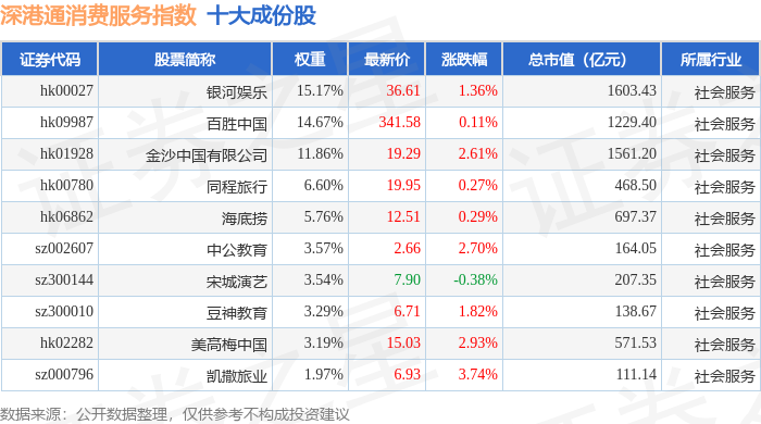 证券之星消息,11月28日,深港通消费服务(983045)指数报收于2745.97点,涨0.99%,成交74.4亿元,换手率0.74%。当日该指数成份股中,上涨的有34家,华图山鼎以5.76%的涨幅领涨,下跌的有9家,达势股份以3.89%的跌幅领跌。