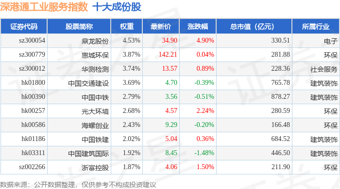 深港通工业服务(983055)指数十大成份股详情如下: