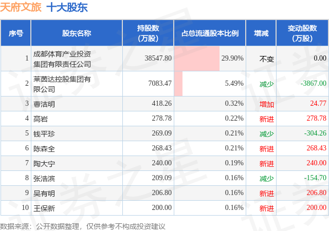 根据天府文旅2025年三季报公布的十大股东详情如下: