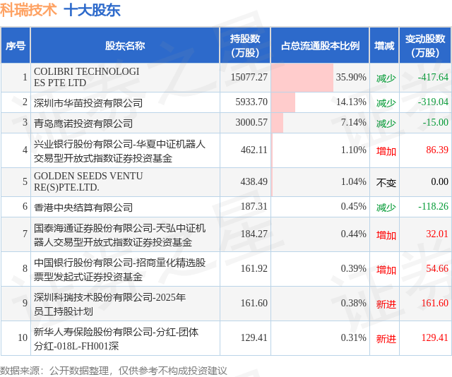 根据科瑞技术2025年三季报公布的十大股东详情如下: