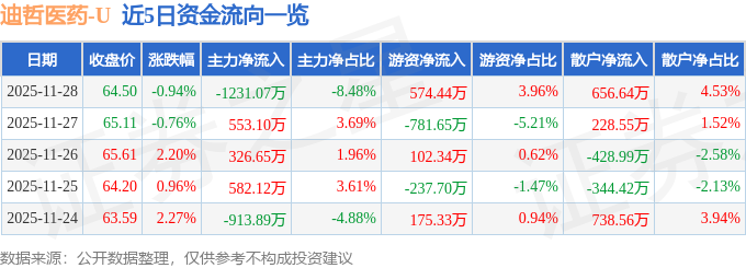 证券之星消息,截至2025年11月28日收盘,迪哲医药(688192)报收于64.5元,下跌0.94%,换手率0.5%,成交量2.26万手,成交额1.45亿元。