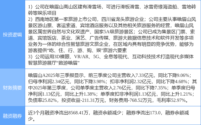 证券之星消息,峨眉山A12月1日涨停收盘,收盘价14.16元。该股于9点25分涨停,2次打开涨停,截止收盘封单资金为1.84亿元,占其流通市值2.47%。
