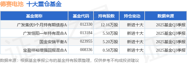 根据2025基金Q3季报公募基金重仓股数据,重仓该股的公募基金共4家,其中持有数量最多的公募基金为广发基金的广发集优9个月持有期债券A。广发集优9个月持有期债券A目前规模为2.64亿元,最新净值1.0946(11月28日),较上一交易日上涨0.16%,近一年上涨5.18%。该公募基金现任基金经理为曾刚。曾刚在任的基金产品包括:广发集裕债券A,管理时间为2021年4月8日至今,期间收益率为15.15%;广发恒鑫一年持有期混合A,管理时间为2021年5月17日至今,期间收益率为7.03%;广发恒益一年持有期混合A,管理时间为2021年8月3日至今,期间收益率为4.88%。