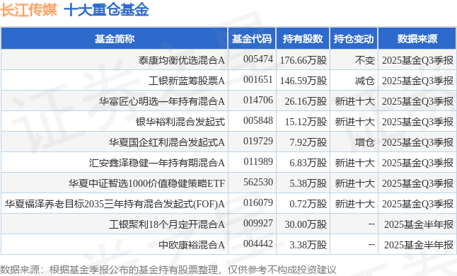 根据2025基金Q3季报公募基金重仓股数据,重仓该股的公募基金共8家,其中持有数量最多的公募基金为泰康基金的泰康均衡优选混合A。泰康均衡优选混合A目前规模为4.03亿元,最新净值1.7385(11月28日),较上一交易日上涨0.72%,近一年上涨16.27%。该公募基金现任基金经理为桂跃强。桂跃强在任的基金产品包括:泰康宏泰回报混合A,管理时间为2016年6月8日至今,期间收益率为70.52%;泰康兴泰回报沪港深混合A,管理时间为2017年6月15日至今,期间收益率为63.09%;泰康颐年混合A,管理时间为2018年5月30日至今,期间收益率为38.12%;泰康弘实3月定开混合,管理时间为2018年8月23日至今,期间收益率为75.14%。