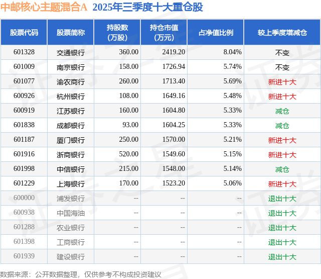 重仓厦门银行的公募基金请见下表: