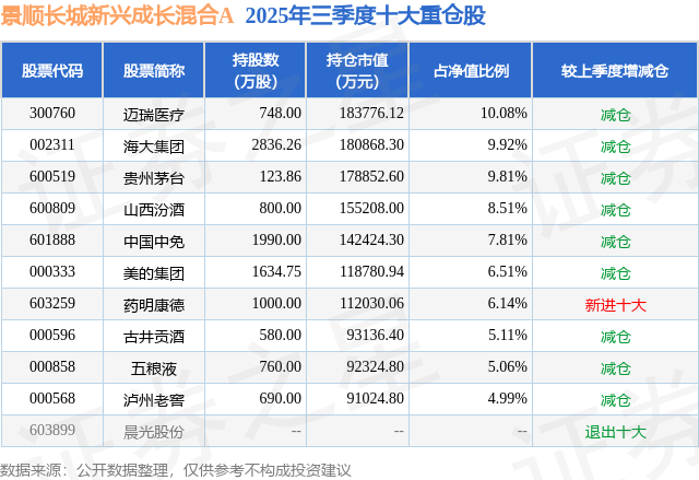 景顺长城新兴成长混合A的前十大重仓股如下: