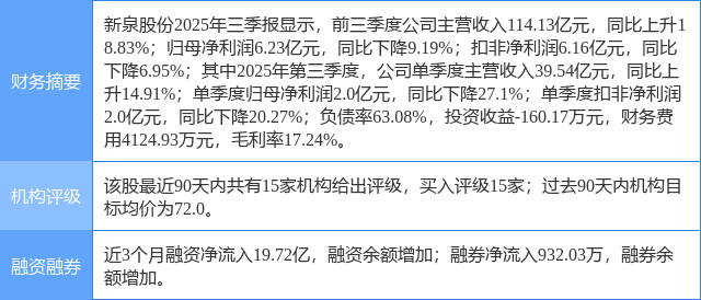今日新泉股份(603179)涨5.20%,收盘报69.61元。