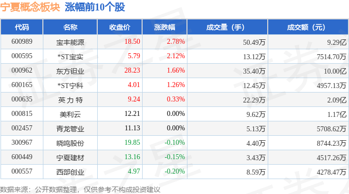 从资金流向上来看,当日宁夏概念板块主力资金净流出8665.51万元,游资资金净流入970.85万元,散户资金净流入7694.66万元。宁夏概念板块个股资金流向见下表: