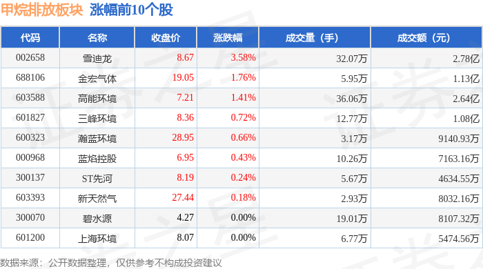 证券之星消息,12月1日甲烷排放板块较上一交易日下跌0.11%,德林海领跌。当日上证指数报收于3914.01,上涨0.65%。深证成指报收于13146.72,上涨1.25%。甲烷排放板块个股涨跌见下表: