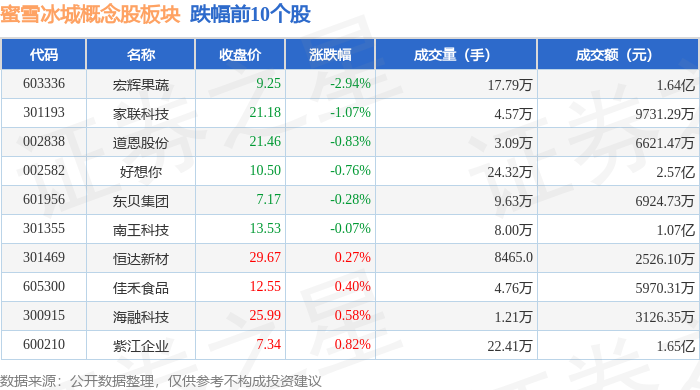 从资金流向上来看,当日蜜雪冰城概念股板块主力资金净流入4506.42万元,游资资金净流出536.24万元,散户资金净流出3970.18万元。蜜雪冰城概念股板块个股资金流向见下表:
