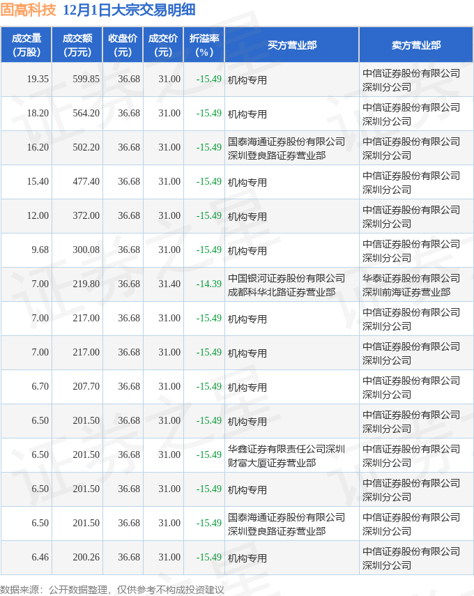 证券之星消息,12月1日固高科技发生大宗交易,交易数据如下: