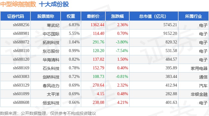 中型综指(000020)指数十大成份股详情如下: