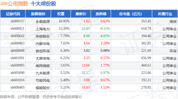 证券之星消息,12月1日,380公用(000113)指数报收于2993.35点,跌0.93%,成交83.83亿元,换手率2.14%。当日该指数成份股中,上涨的有10家,内蒙华电以2.2%的涨幅领涨,下跌的有6家,上海电力以6.11%的跌幅领跌。