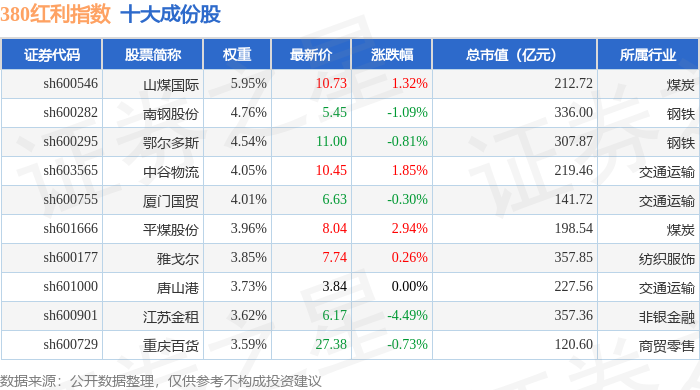 380红利(000150)指数十大成份股详情如下: