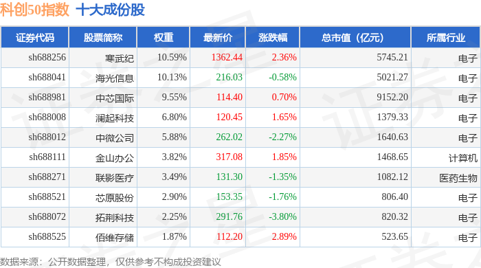 证券之星消息,12月1日,科创50(000688)指数报收于1336.76点,涨0.72%,成交654.93亿元,换手率1.7%。当日该指数成份股中,上涨的有30家,华润微以9.69%的涨幅领涨,下跌的有19家,阿特斯以6.92%的跌幅领跌。