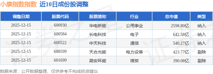近10日内小康指数(000901)成份股做了调整,新纳入了3只股票,剔除了2只股票。